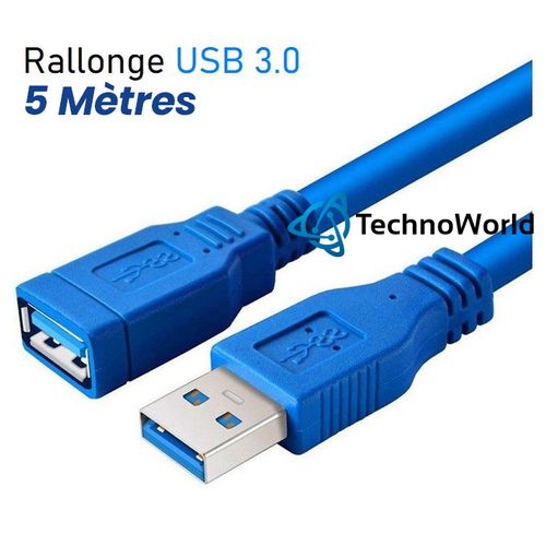 RALLONGE USB 3.0 MALE FEMELLE 5M - 5 Mètres - BLEU