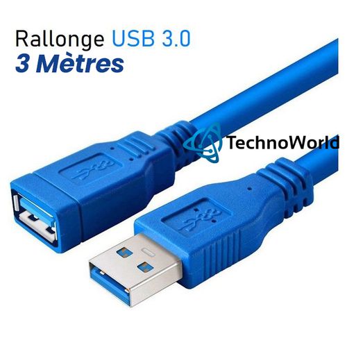 RALLONGE USB 3.0 MALE FEMELLE 3M - 3 Mètres - BLEU