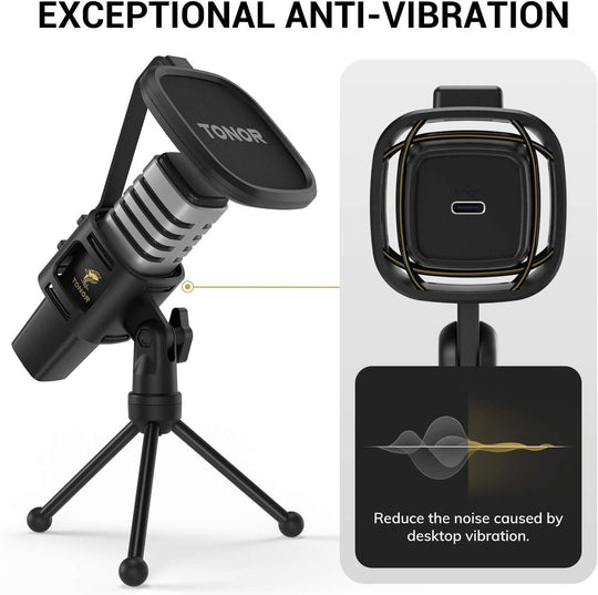 Micro PC, USB Microphone Condensateur Professionnel pour Gaming Streaming Podcast Studio Enregistrement Singing Youtube Gamer Chant Stream Voix-Off, pour Ordinateur de Bureau et Laptop TC30