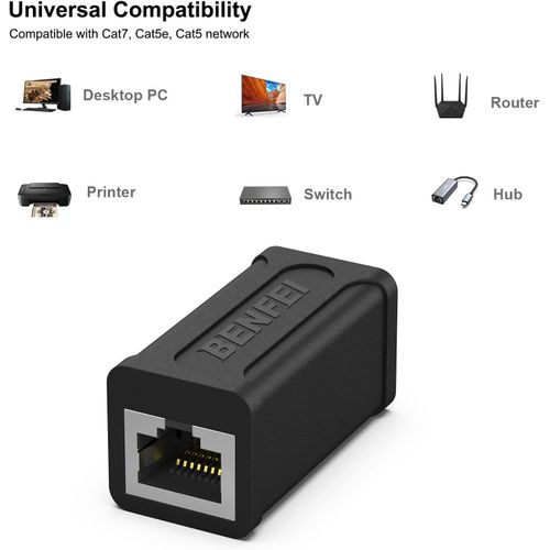 BENFEI Connecteur d'extension Ethernet de coupleur Rj45 Aucune perte de signal Avec jusqu'à huit connexions de chaque cÎté alignées parfaitement et solidement sécurisées, les signaux passent sans perte d'intégrité du signal ni décalage. En outre, les...Prix normal 3,500Prix normal 3,500 -