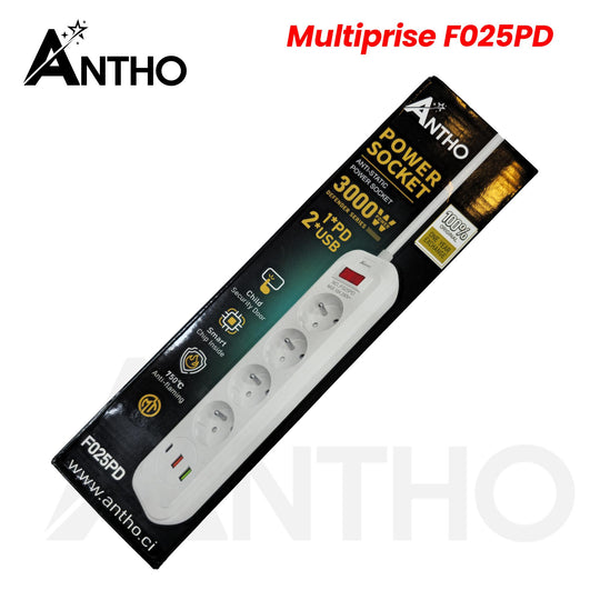Multiprise F025PD - ANT - 4 prises - 2 x USB - 1 x Type C - 3000W