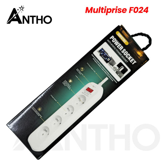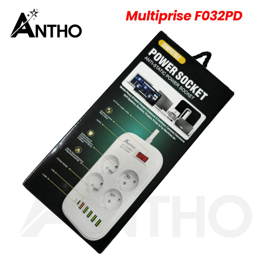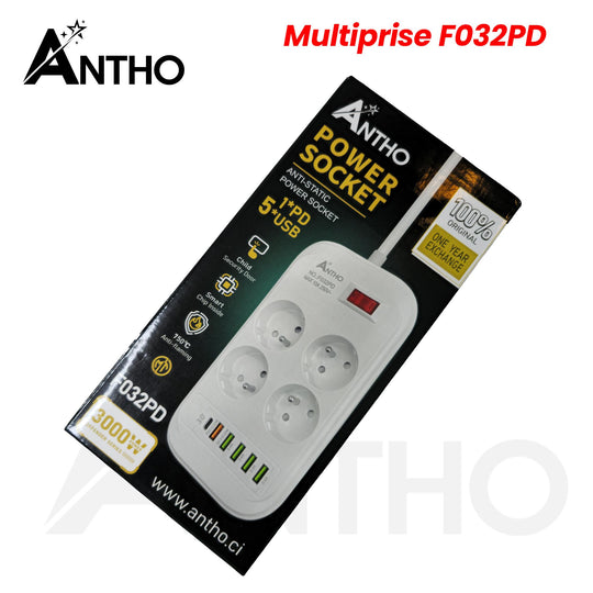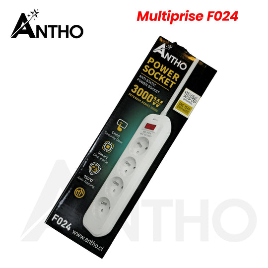 Découvrez la multiprise Antho F024, conçue pour offrir une alimentation fiable et sécurisée à vos appareils. Avec une puissance de 3000W et une puce intelligente intégrée, elle ajuste l'énergie en fonction des besoins de chaque appareil....Prix normal 5,000Prix normal 5,000 -