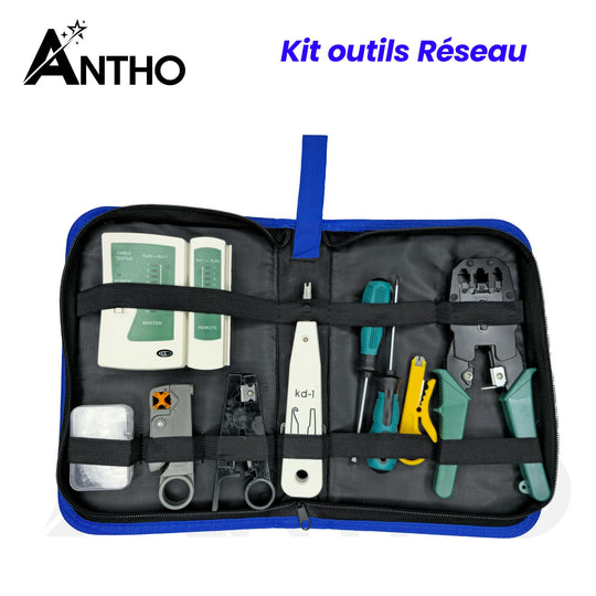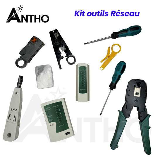 Kit d'outils de réparation réseau (9 articles) Ce kit d'outils de maintenance réseau 9 en 1 est parfait pour vos travaux de réparation réseau. Il comprend : Une pince à sertir RJ-45 / RJ-11 Un testeur de...Prix normal 15,000Prix normal 15,000 -