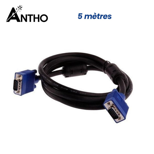 Découvrez le câble VGA Antho, idéal pour des connexions vidéo de haute qualité. Avec une longueur de 5 mètres, il vous offre la flexibilité nécessaire pour organiser votre espace de travail ou de divertissement. Ce câble...Prix normal 4,000Prix normal 4,000 -
