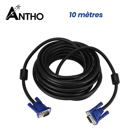 Découvrez le câble VGA Antho, idéal pour des connexions vidéo de haute qualité. Avec une longueur de 10 mètres, il vous offre la flexibilité nécessaire pour organiser votre espace de travail ou de divertissement. Ce câble...Prix normal 7,000Prix normal 7,000 -