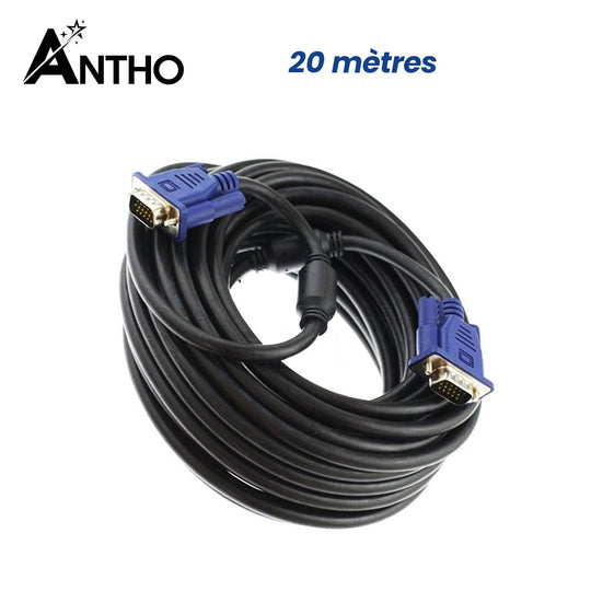 Découvrez le câble VGA Antho, idéal pour des connexions vidéo de haute qualité. Avec une longueur de 20 mètres, il vous offre la flexibilité nécessaire pour organiser votre espace de travail ou de divertissement. Ce câble...Prix normal 15,000Prix normal 15,000 -