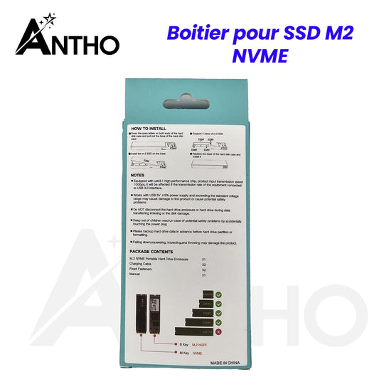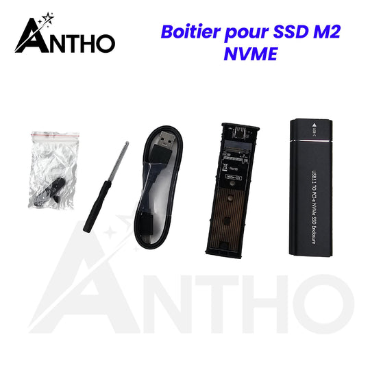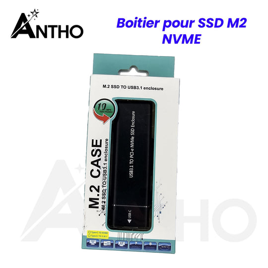 Découvrez le boîtier externe Antho pour SSD M2, idéal pour transformer votre SSD en stockage portable ultra-rapide. Avec une vitesse de transmission de 10Gbps via USB 3.1, transférez vos fichiers en un éclair. Ce boîtier est...Prix normal 15,000Prix normal 15,000 -