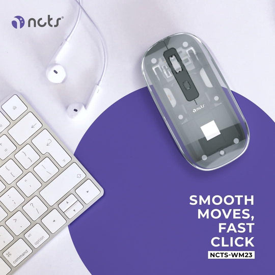 Souris sans fil - NCTS - WM23 - Bluetooth + USB Sans fil - Transparente - Batterie rechargeable - Blanc