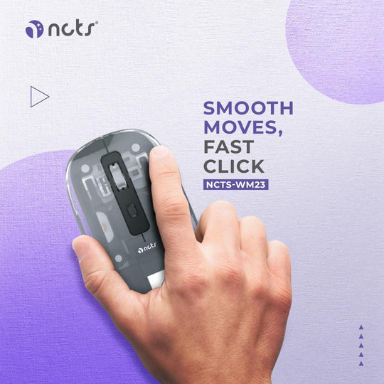 Souris sans fil - NCTS - WM23 - Bluetooth + USB Sans fil - Transparente - Batterie rechargeable - Noir